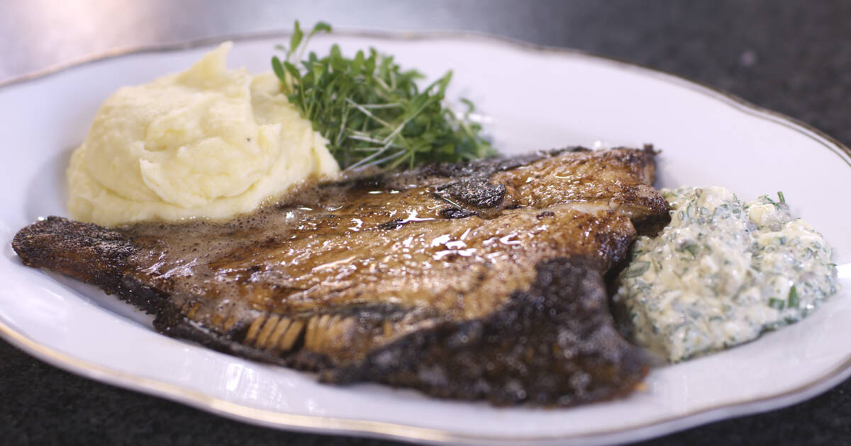 Serveer de pladijs op een groot bord, samen met een flinke schep puree en een lepel tartaarsaus.
